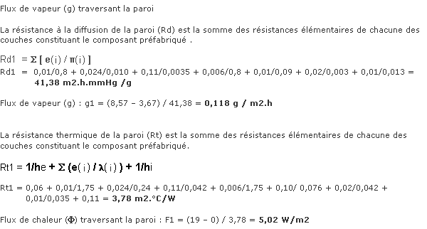 Calcul du flux de transfert de vapeur d’eau(g) et de chaleur (Phi) traversant le panneau préfabriqué de façade |